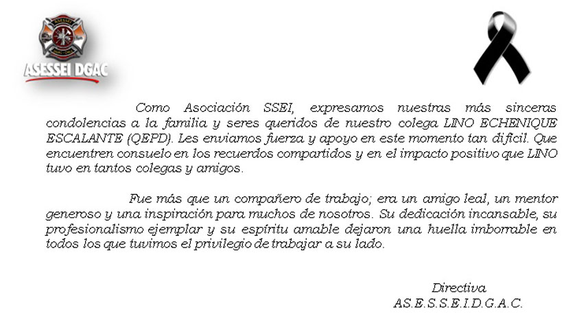 A parte de ser SSEI soy bombero y ahi nos caracterizamos por tener espiritu de cuerpo, mi deseo es poder ver alguna vez que el Servicio SSEI sea así, y la Asociación es una buena oportunidad para mostrarnos como un solo cuerpo.